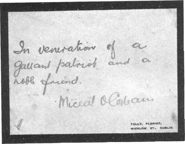 This memorial card was sent by Irish leader Michael Collins to Ashe’s family shortly after his death.Collins gave the short but powerful oration at Ashe’s graveside. “Nothing additional remains to be said.That volley which we have just heard is the only speech which is proper to make above the grave of a dead Fenian”